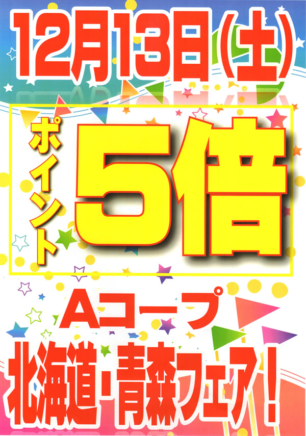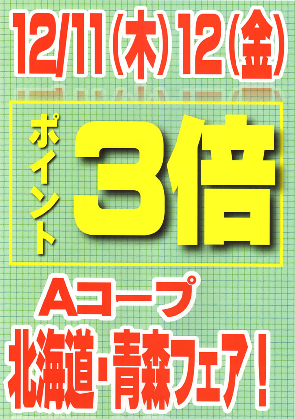 > 青森・北海道フェア(12月11日~13日) ポイント5倍・3倍