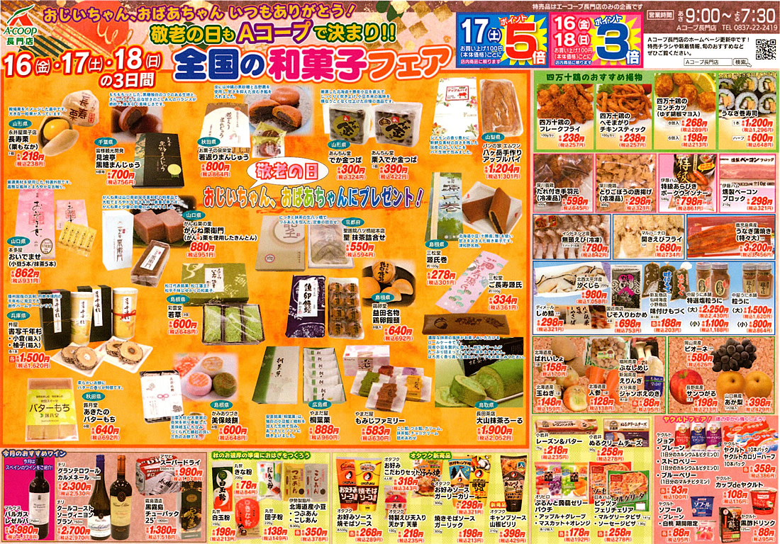 鮮魚コーナーでも、長門の食材をお買い得価格でご用意していますので、是非、お買い求めください。