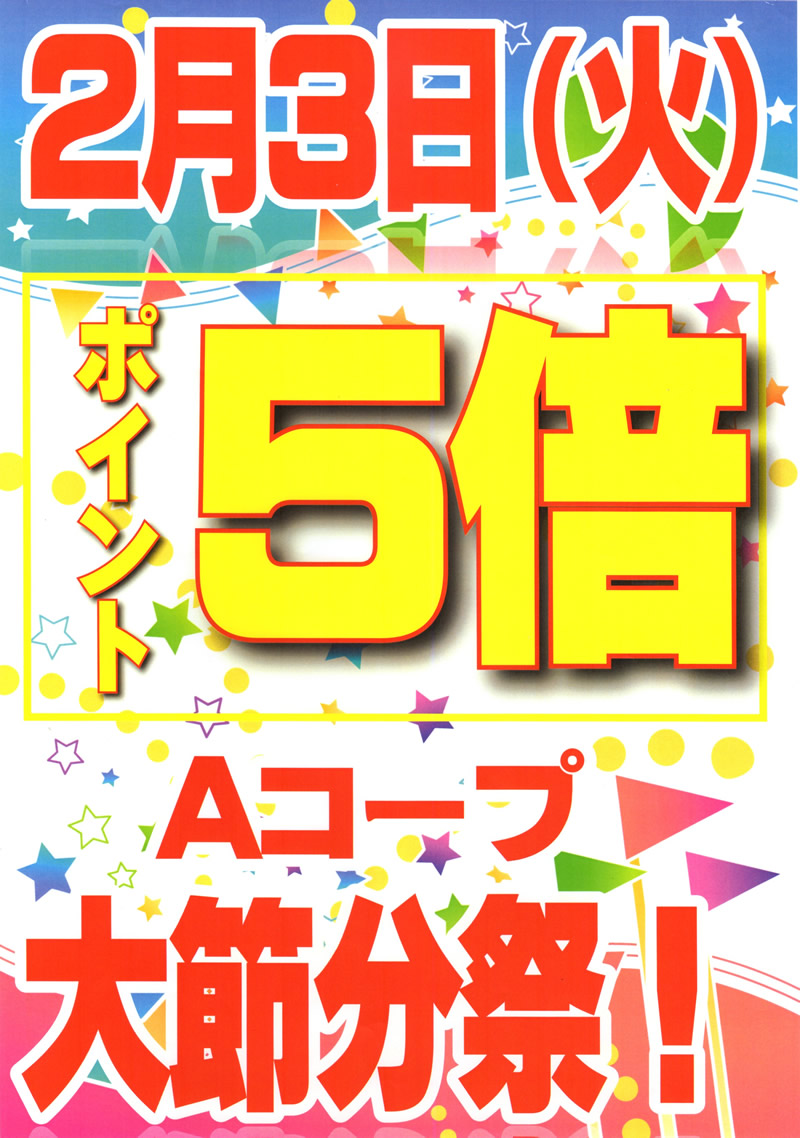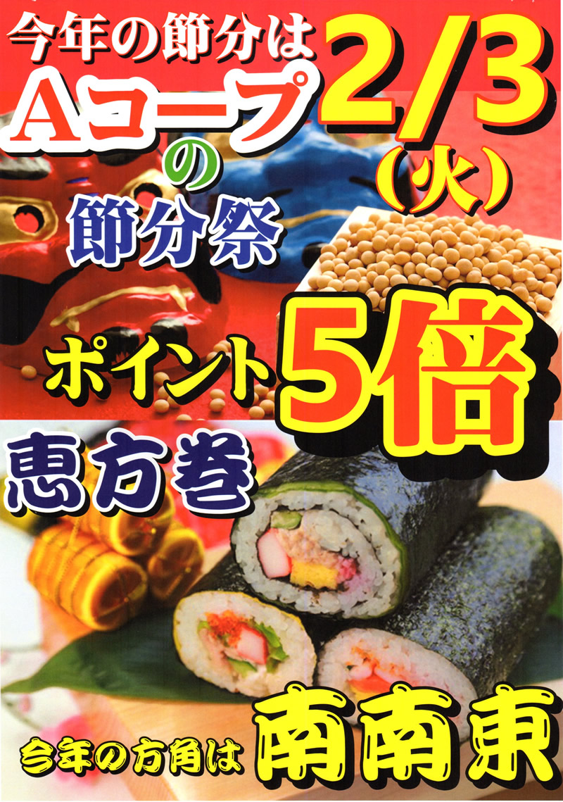 Aコープ長門店大節分祭開催決定ポイント5倍
