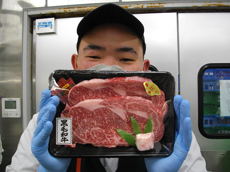 精肉コーナーでは対面コーナー・パックにて黒毛和牛を贈答用やお祝い用に詰めるサービスを実施しております。
